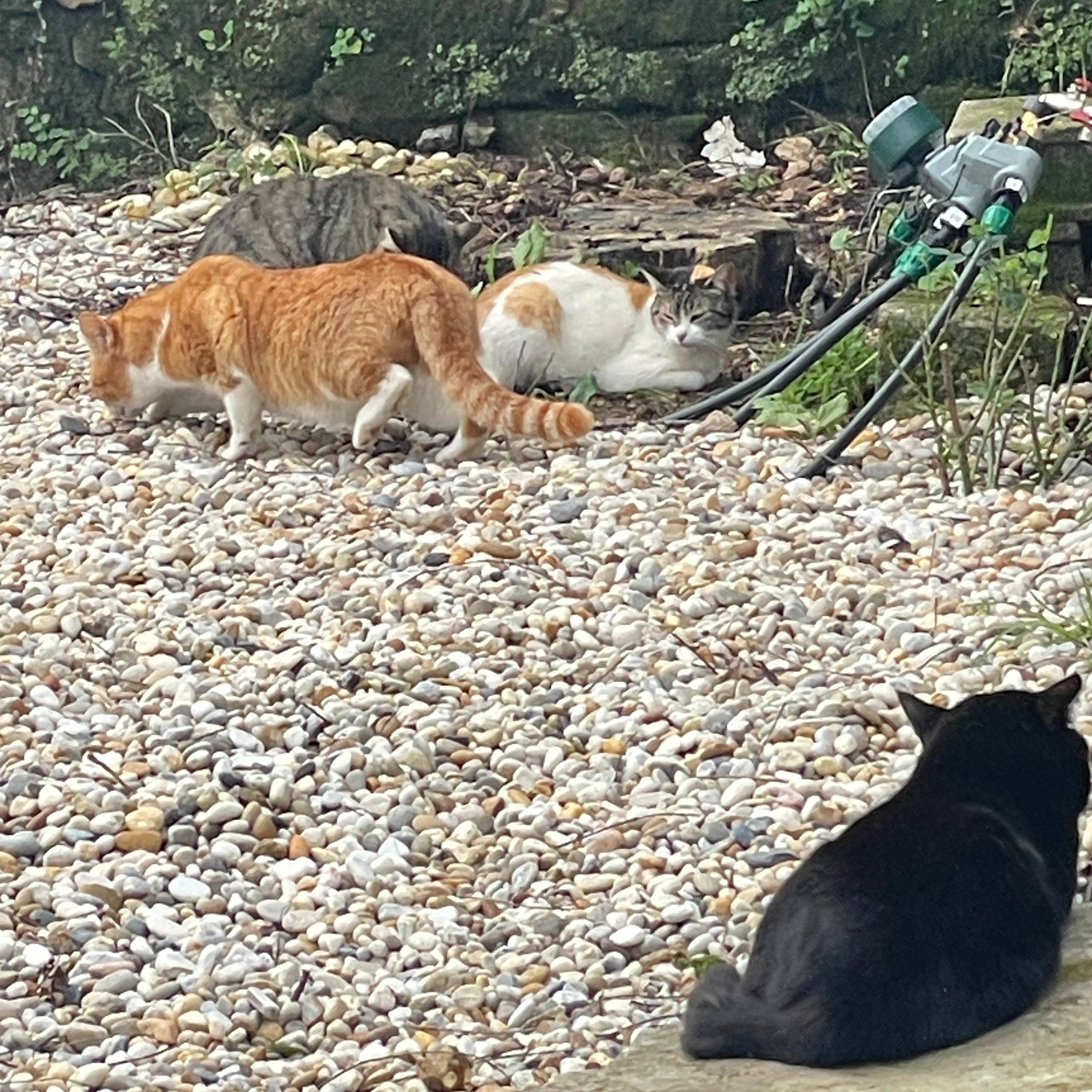 Spring is upon us, and all of the cats in our yard are hot and bothered. Our main resident of our cat hotel, or should I say cat brothel, was strutting her stuff bringing all the Tom’s to our yard. One of the male cats known as Senór Nueces Grandes aka Mr. Big Nuts, was following so closely behind her, she had to keep stopping to slap him. By the end of the day she had around 5 male cats around her and at night it caused quite the ruckus!