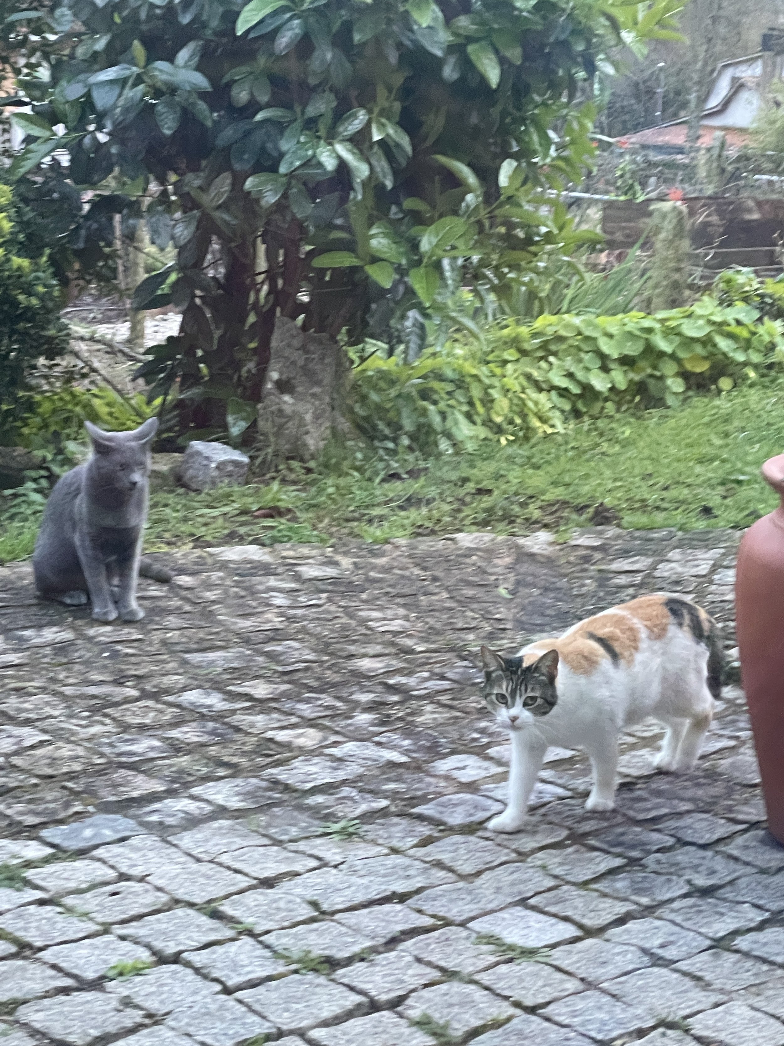 I think Smokey is her bodyguard and walks around fighting off the other cats, he seems like the only gentleman that doesn’t want to mount her. At first I wasn’t sure what was going on, as all of our cats from the states had to be spayed or neutered before we could take them home from the shelter. In Spain it’s not as common to have your animals fixed, which is why there is such a huge stray cat population.