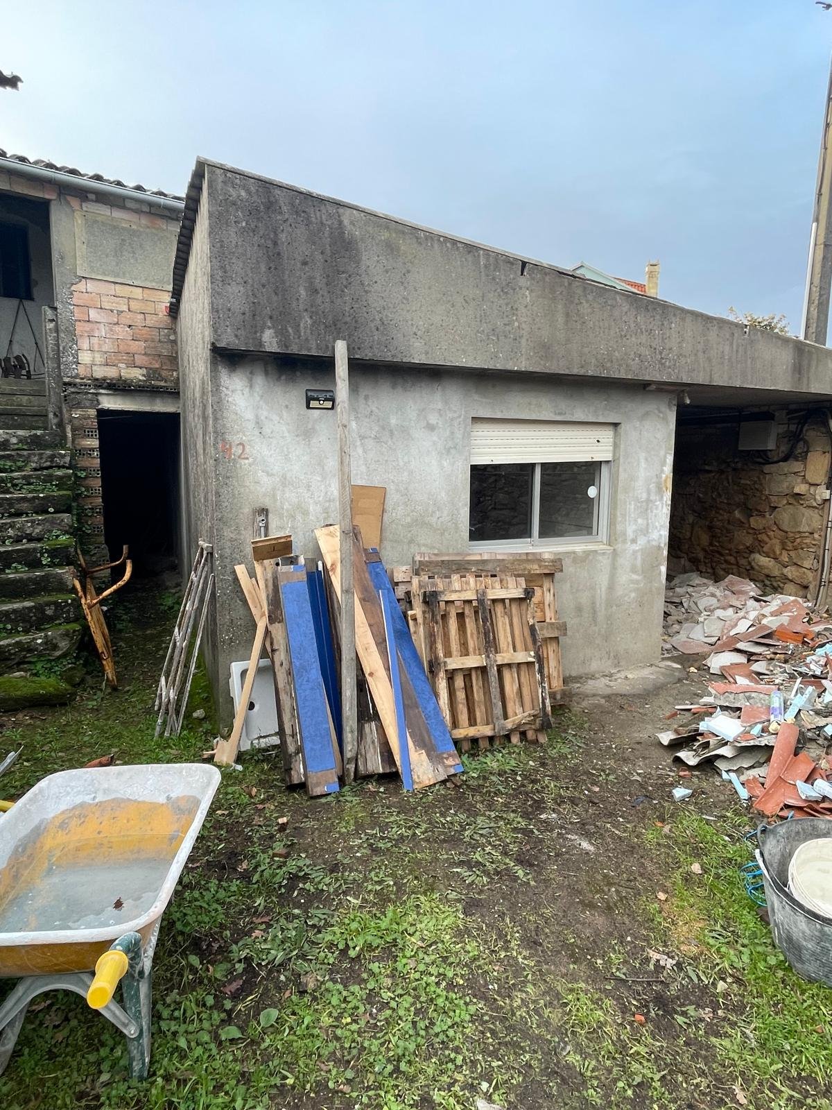 Stacked stone is a hallmark of Galician architecture, and we wanted to highlight that. Once we had the permits, the construction company expertly maneuvered a massive front loader up our narrow street and inside the gate, ready to demolish the cinder block structure that had been cobbled onto The Ruin.